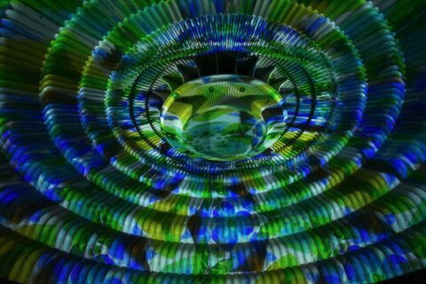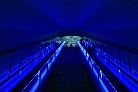 長いエスカレーターを2回乗り継ぎ、やっと展示会場かと思ったら 更に2階分ぐらいエスカレーターに乗りました。 あまりの高さに驚きっぱなしでしたが、上から見た景色はさすがに良かったです! |